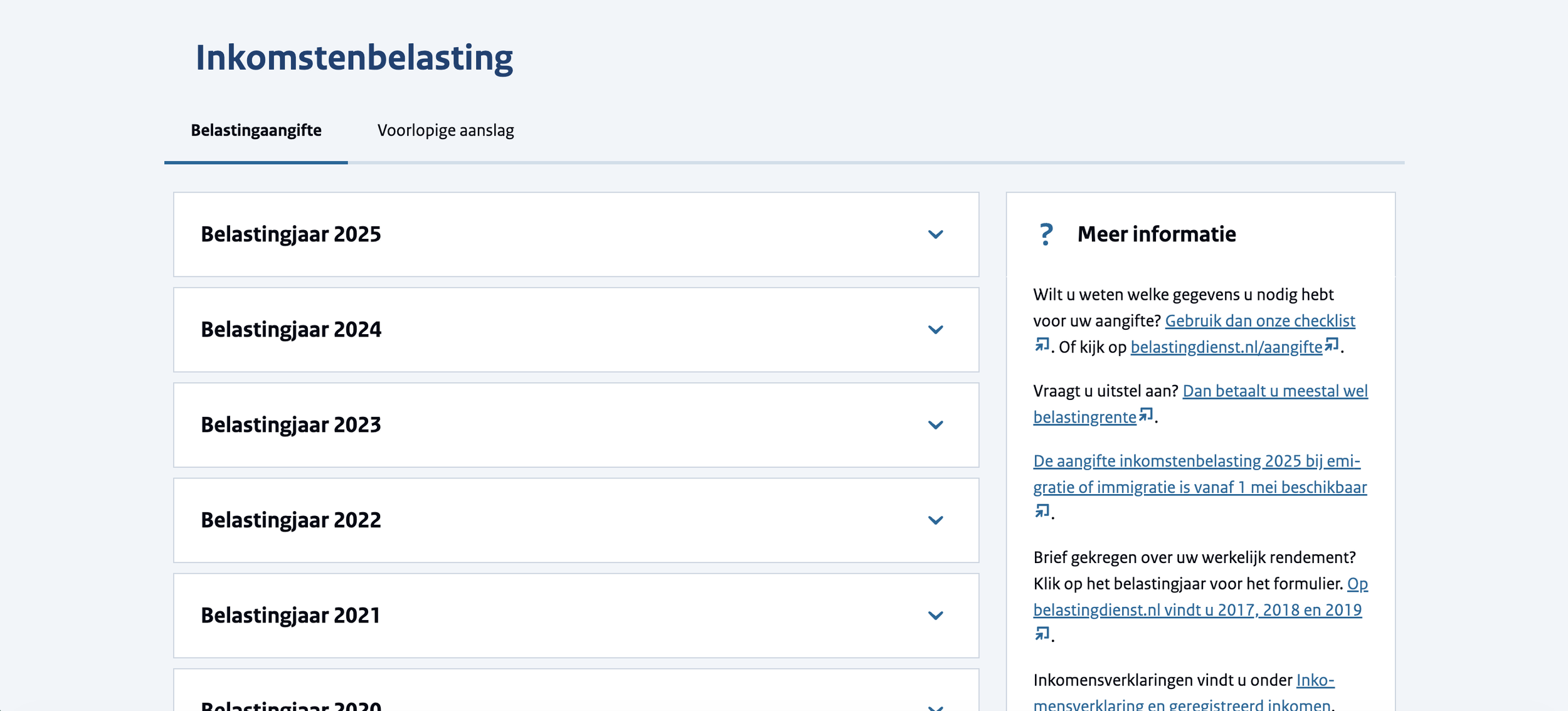 Step 4: Click on ‘Belastingjaar 2025’ (‘Tax Year 2025’)